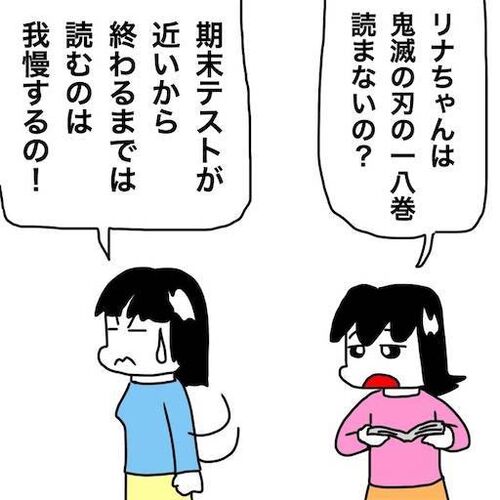 No.1857 鬼滅の刃18巻を期末テストが終わるまで我慢した長女とネタバレしないよう我慢した次女
