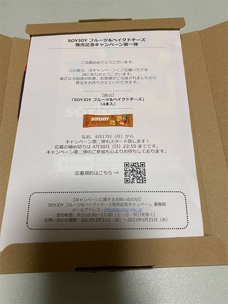 Twitterのキャンペーンで今度はSOYJOYフルーツ&ベイクドチーズが当たりました!